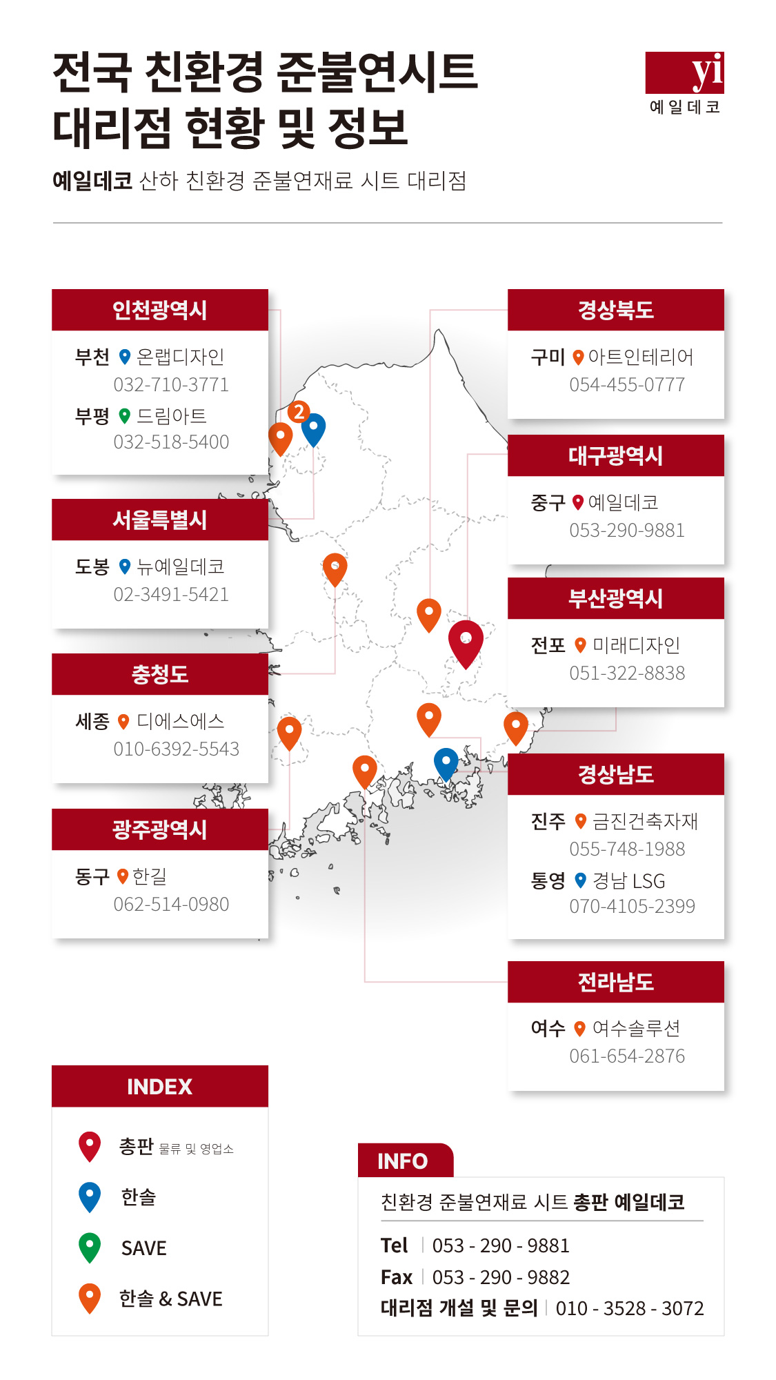전국 준불연시트 대리점 현황
