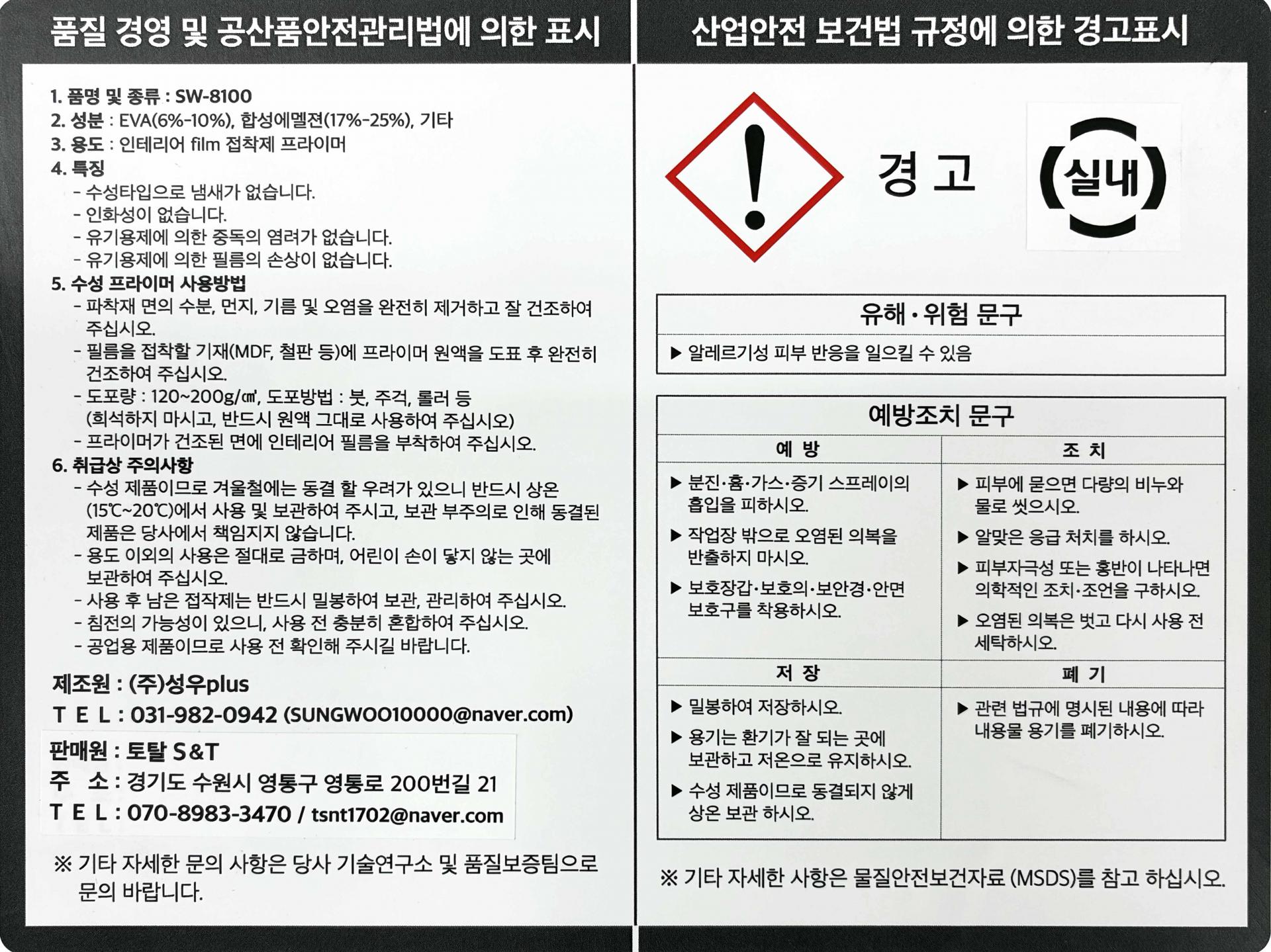 제품명 : 친환경 소나무 수성 프라이머 인테리어필름 본드